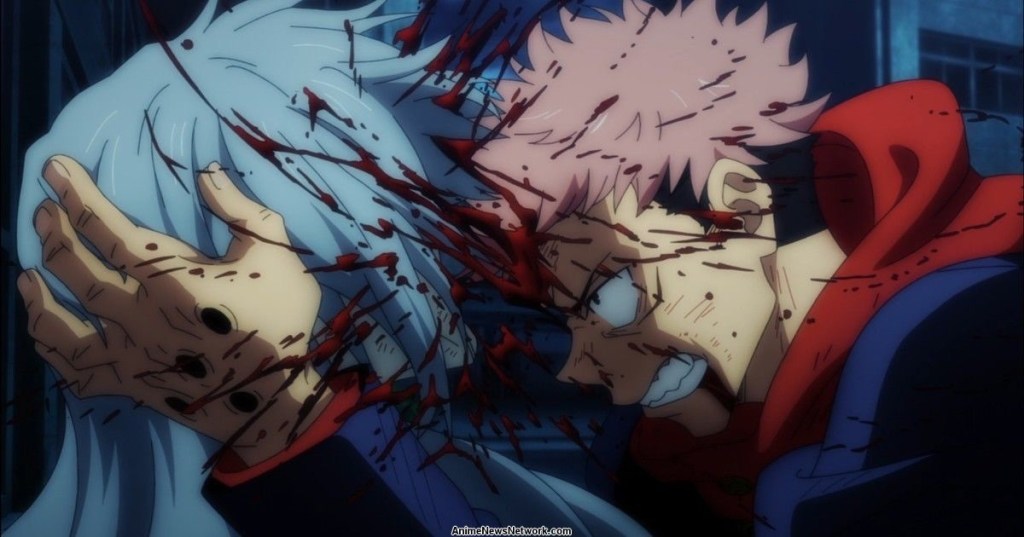 In Episode 7, Gojo Satoru removes a Curse’s head directly from its body, though the moment is stylized in black and white. Throughout the season, possession, bodily distortion, and graphic injury appear repeatedly.