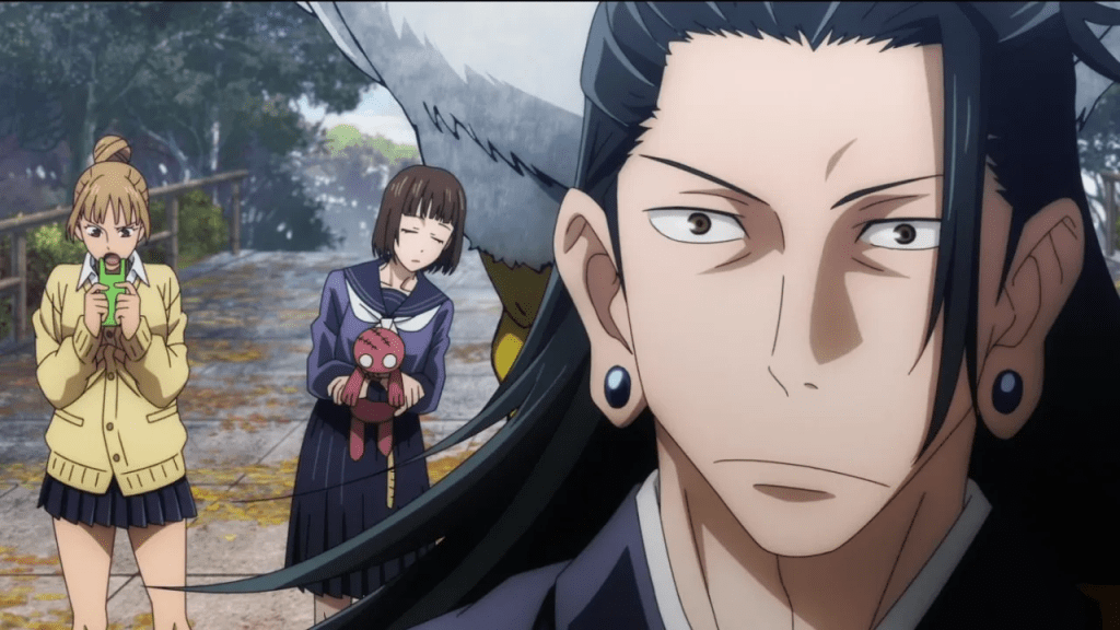 One of the standout battles early in the film is Yuuta and Inumaki’s fight against the Curse known as Zomba. While there are visible injuries and some blood as the Curse is defeated, this encounter is relatively minute when set against later fights in the movie and the broader series. This scene also serves as an important character moment, giving viewers deeper insight into Inumaki’s compassion and protective nature.