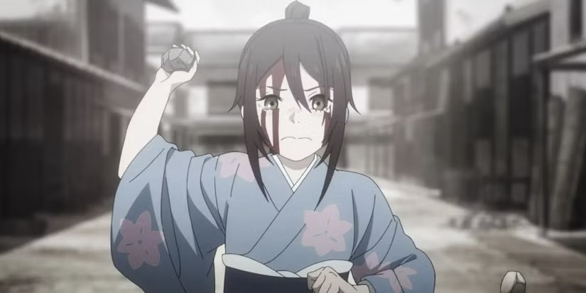 Our main character, Gabimaru, is an extraordinarily skilled assassin who uses a supernatural art known as Ninjutsu. His reputation is built on ruthless efficiency, and the series makes no attempt to hide how many lives he has taken. At multiple points, characters recount his past while he is shown seated among piles of bodies or skulls—a visual reminder of his violent history.