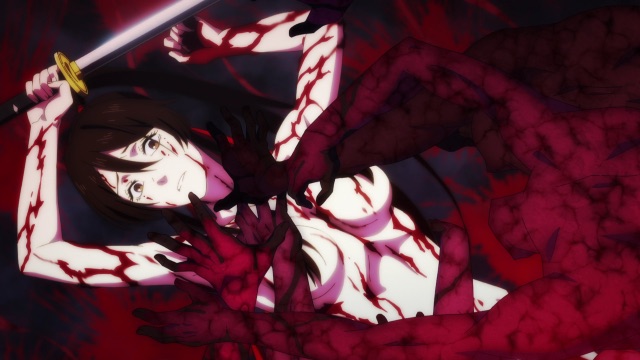 - In Episode 2, Sagiri is shown nude in symbolic imagery, surrounded by bloodied limbs. While not explicitly sexualized, the imagery is disturbing and suggestive.