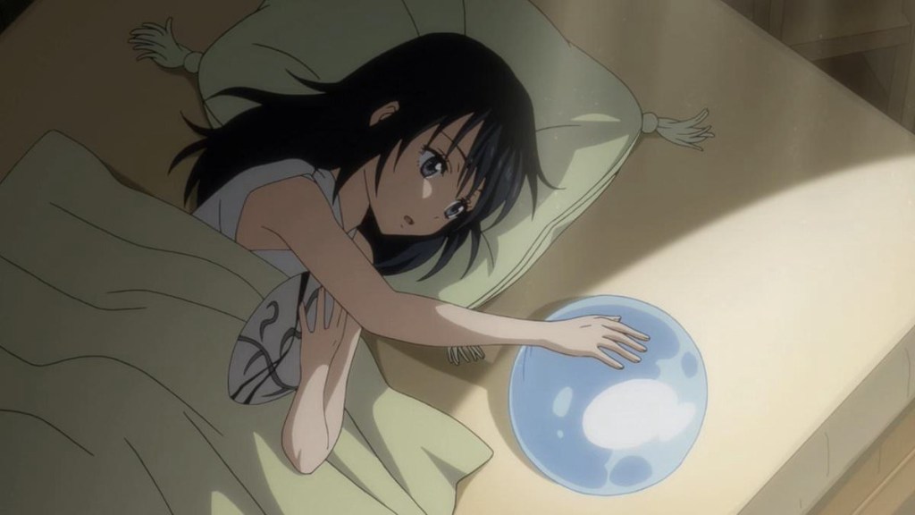 One of the heavier themes appears through Shizu’s backstory. She tells Rimuru how she was used and abused by the man who summoned her for her magical abilities. Her nightmares and trauma suggest exploitation beyond what is explicitly stated.