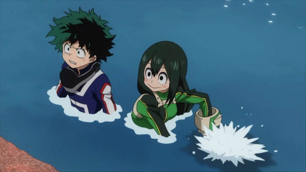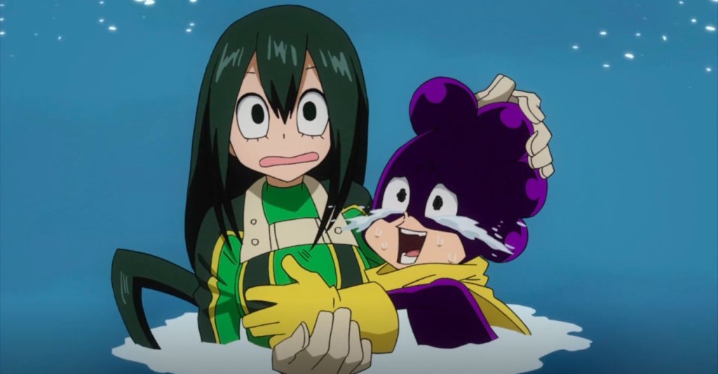 Lastly, there is a side character named Minoru Mineta who parents may want to be aware of. Mineta is written as the “pervy comic relief” character, meaning that many of his jokes revolve around his attraction to his female classmates. Throughout the season he frequently makes inappropriate comments about the girls’ appearances, including their clothing or body types, and in one moment he even manages to grope one of his classmates, Tsuyu Asui.