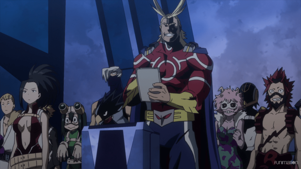 Another recurring theme throughout the first seasons is secrecy: Midoriya receives his Quirk from Japan’s greatest hero, All Might. This power—called “One For All”—is unique because it can be passed from one person to another and becomes stronger with each new user. Because of the dangerous history surrounding this power, only a small group of people are allowed to know the truth about it. This secrecy plays an important role in protecting both Midoriya and the larger world.