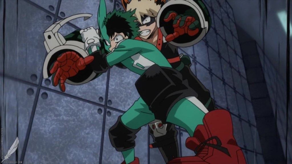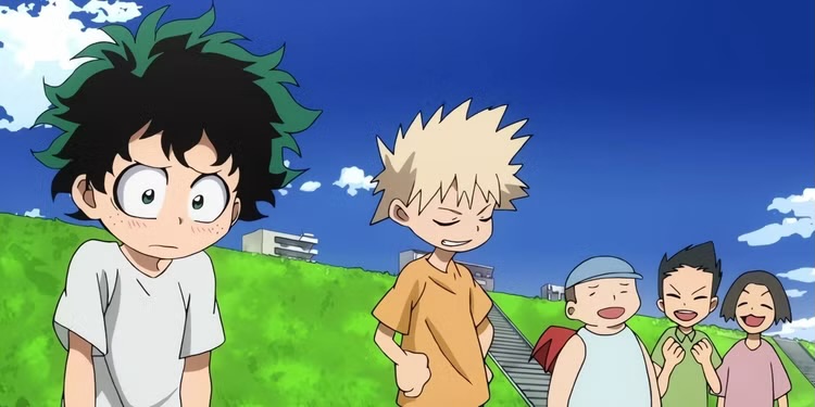 The first episode introduces viewers to two important characters: Bakugou Katsuki and Midoriya Izuku. Their relationship begins with a classic but painful trope—bully and victim.