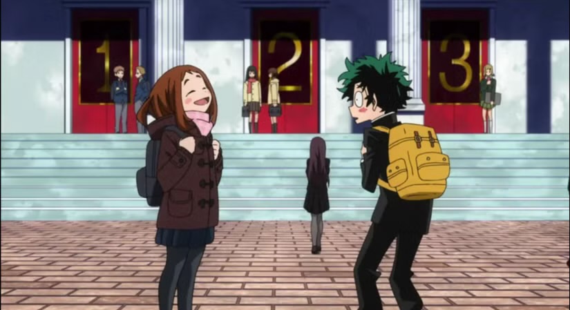 One of the sweetest early examples involves Midoriya developing a small crush on his classmate Uraraka. She is one of the first students to show him kindness at U.A. High School and repeatedly encourages him when he doubts himself.