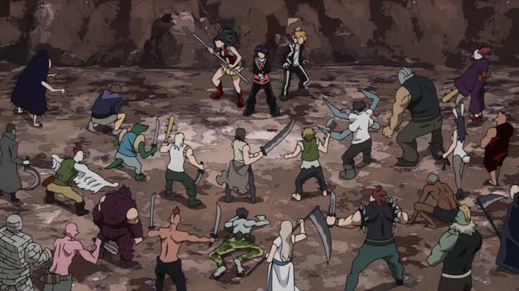 The tone shifts near the end of the season when the students encounter a group of actual villains during what they believed was simply another training session. At first, the students assume the situation is part of the exercise. But after seeing the seriousness on their teacher’s face—and being suddenly separated by a teleportation ability—they quickly realize something much more dangerous is happening.