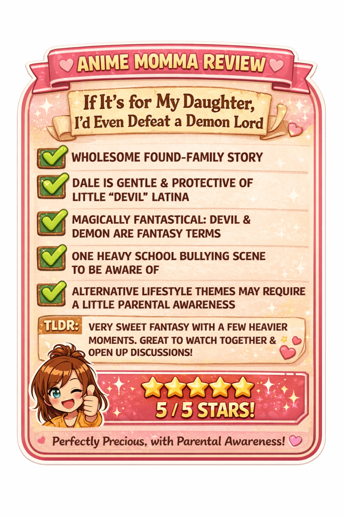 👉 Anime Momma Verdict: Wholesome at heart, with a few moments that call for thoughtful viewing.